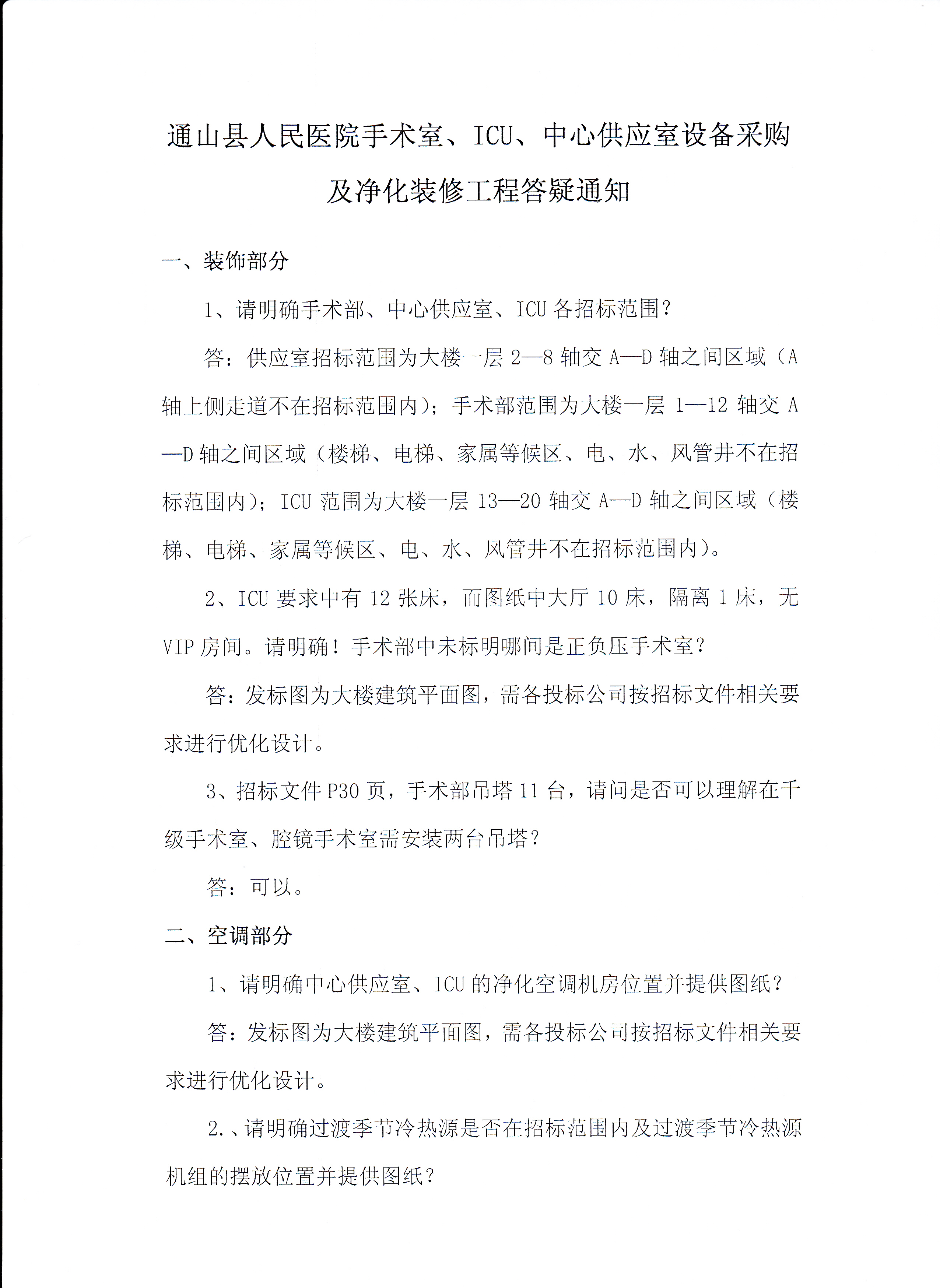 >> 通山縣人民醫(yī)院手術(shù)室、ICU、中心供應(yīng)室設(shè)備采購及凈化裝修工